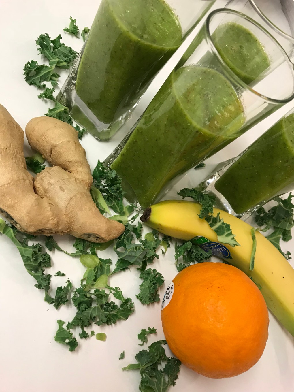 Innehåller grönkål, ingefära, gurkmeja, chiafrön, lime mm. Det innebär antioxidanter, kostfiber, vitaminer, mineraler, omega 3 som är bra för tarmfloran, immunförsvaret mm