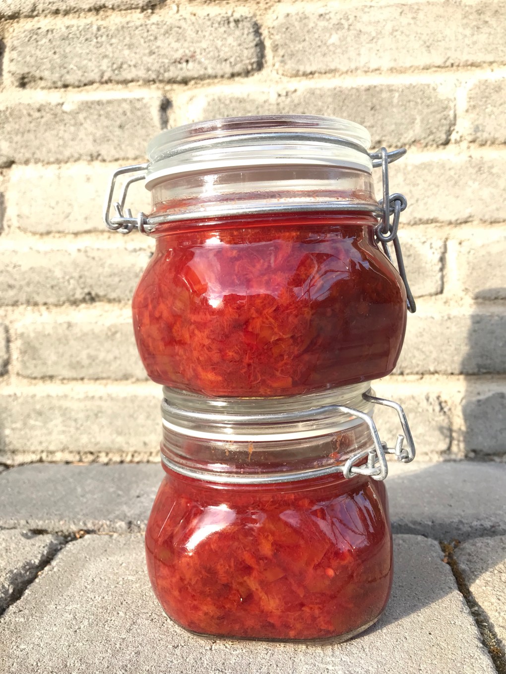 Otroligt god lite ”hot” till all möjlig mat, till ostbrickan eller till en kula vaniljglass. Chutneyn kommer jag att förvara i jordkällare så därför är det socker i, hade annars sötat med honung.